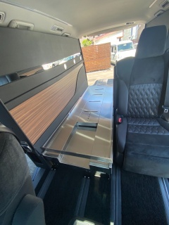 3人乗り・棺室LED照明付内装仕上げ・レール引き出し収納式・仕切カーテン