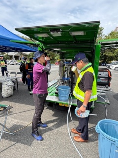 当社の災害支援車には、「電気・ガス・水」の生成機材が搭載しております。